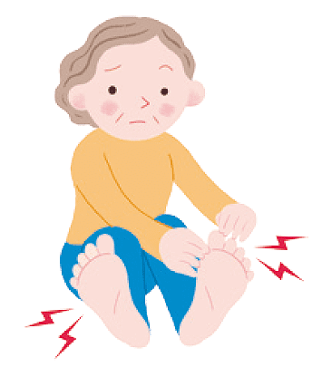 症状は、徐々に両方の足先・足裏から膝へ、手先へと体の中心に向かって広がります。