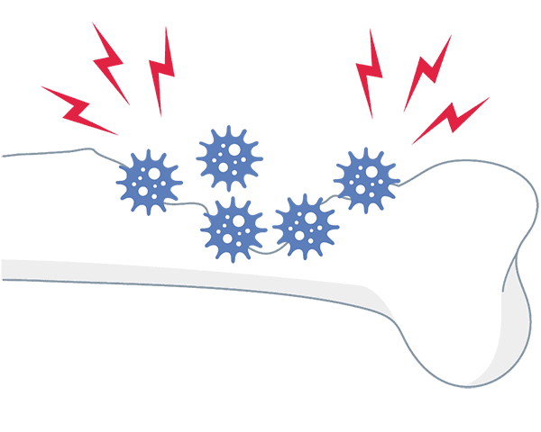 体性痛とは、体性組織(皮膚や骨、関節、筋肉など)への機械的刺激(切る、刺す、たたくなど)が原因で生じるいたみです。がんの場合、体性組織にがんが転移・浸潤(周囲の組織に染み込むように広がること)し破壊されたり炎症したりして、いたみが生じます。
